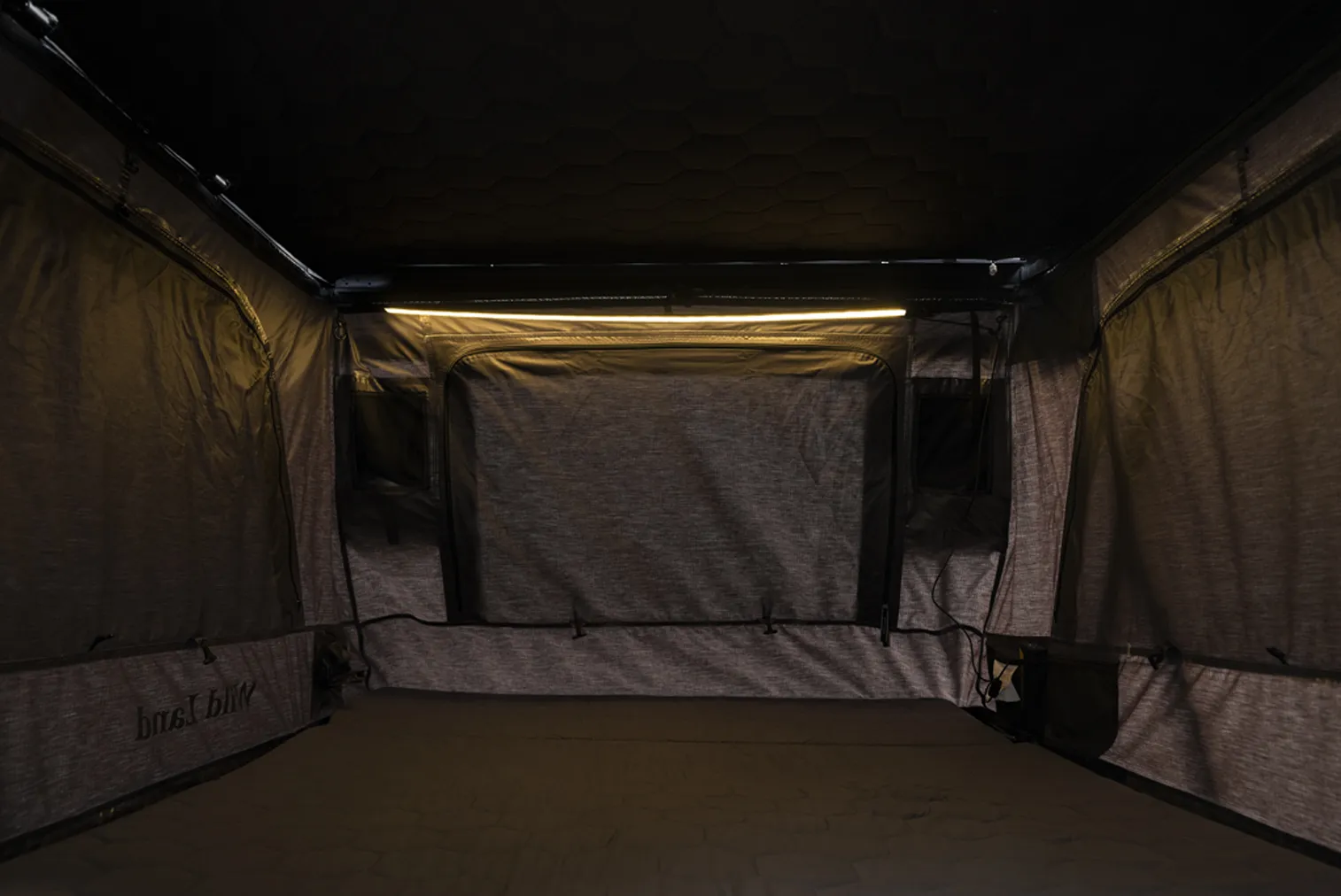 Wild Land Sky Rover, ein revolutionäres Dachzelt mit transparentem Dach und mehreren Fenstern für einen 360-Grad-Blick, insbesondere auf den Nachthimmel. Dank des vollautomatischen Aufbaus lässt sich das Zelt mühelos aufbauen. Bei Stromausfall sorgen die mitgelieferten Hebevorrichtungen für ein sicheres Fahrgefühl. Es bietet Platz für 2-3 Personen und ist perfekt für Familienabenteuer – nehmen Sie Ihre Lieben mit und beobachten Sie die Sterne in der Wildnis!